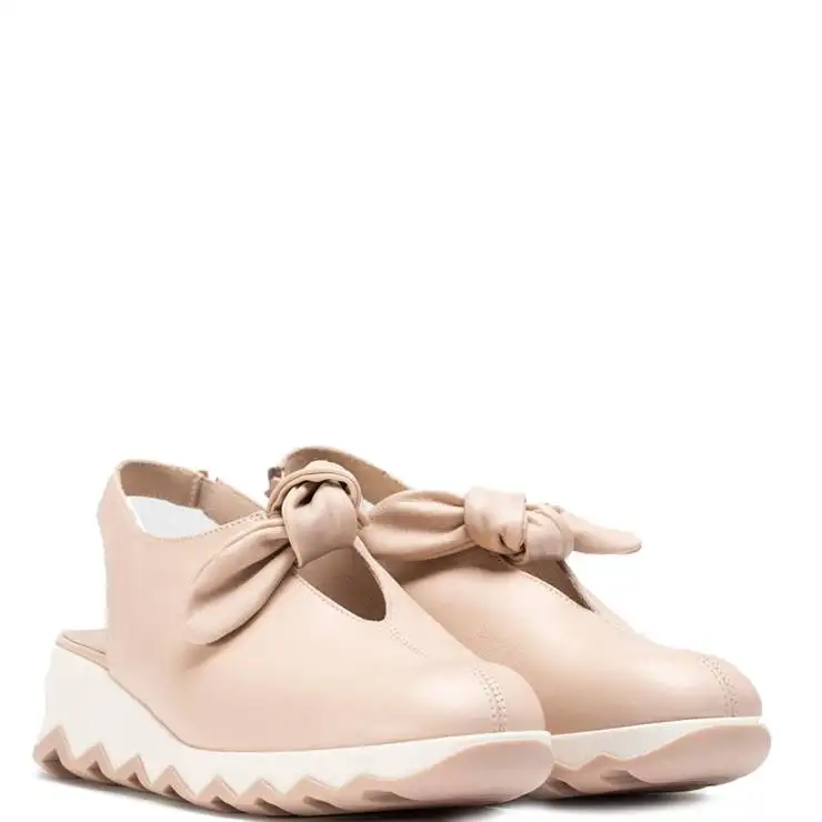 Zapato destalonado elaborado en piel. Detalle de lazo en el empeine. Tira trasera elástica. Suela dentada EvoLight con acabado bicolor. Plantilla interior de MemoryGel. Suela de goma TR de 4 cm de altura.
