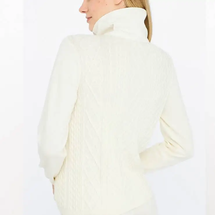 Jersey elaborado en mezcla de viscosa. Detalles de nailon. Cuello alto con cremallera y botones a presión. Logotipo LJ metálico en el bajo y en tirado de cremallera.