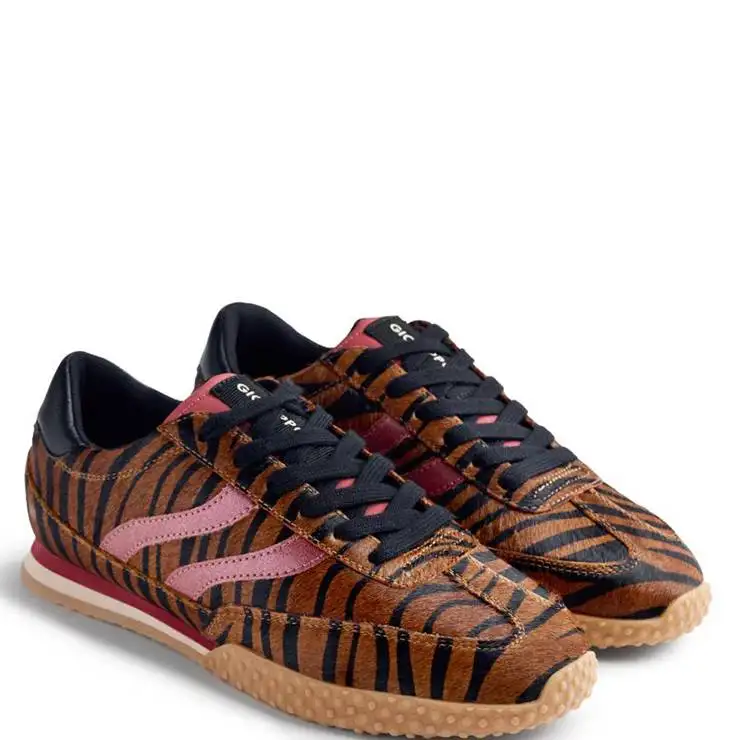 Zapatilla deportiva elaborada piel tipo pelo en animal print. Detalles metalizados. Plantilla acolchada y extraíble de poliéster transpirable. Entresuela de goma EVA. Suela de TPR flexible de 2 cm.