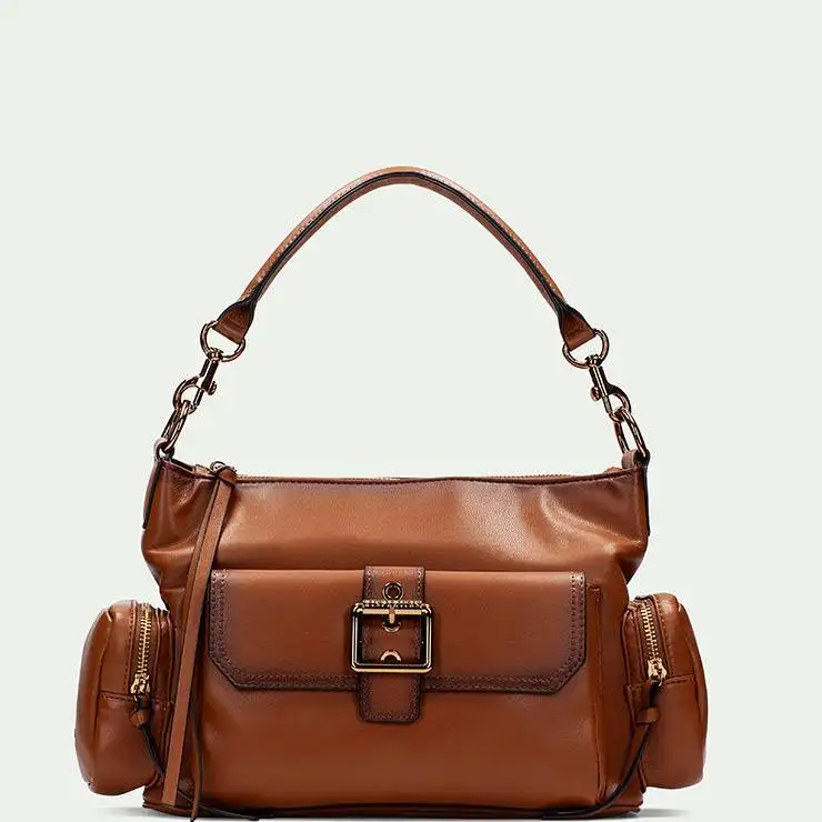 Bolso de hombro en PU. Bolsillos exteriores y cierre de cremallera. Hebilla decorativa en el bolsillo central. Bolsillo con cremallera en el interior. Medidas: 36x21x12 cm