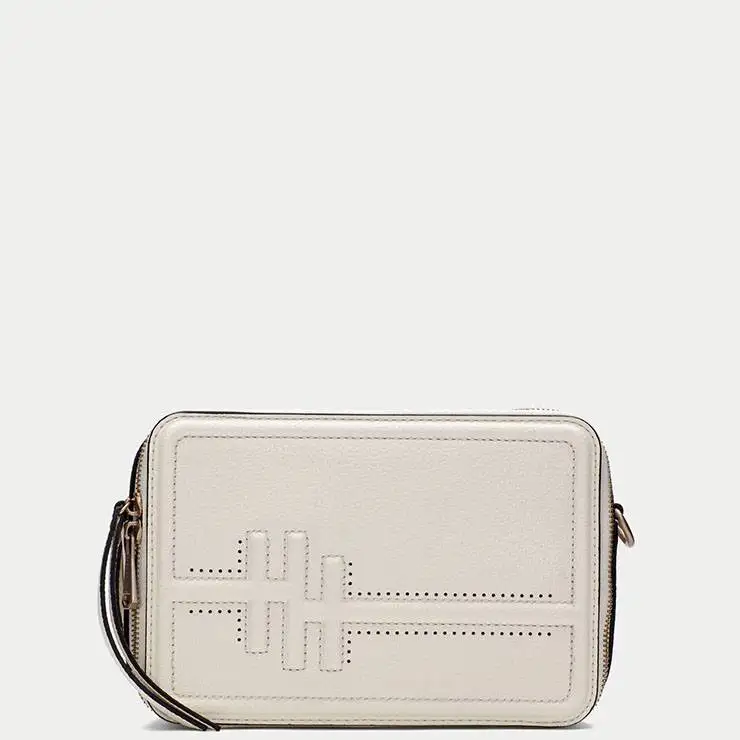 Bolso compacto tipo bandolera. Correa ajustable con herrajes metálicos dorados. Cierre con cremallera. Logo en relieve en la parte frontal. Medidas: 23x16x7 cm.
