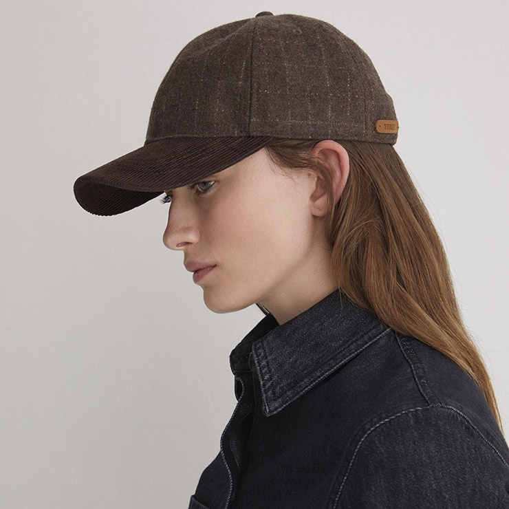 Gorra de rayas en tejido franela mezcla con lana. Visera de pana realizada en algodón 100%. Diseño con tira ajustable. Medidas visera: 7 cm.