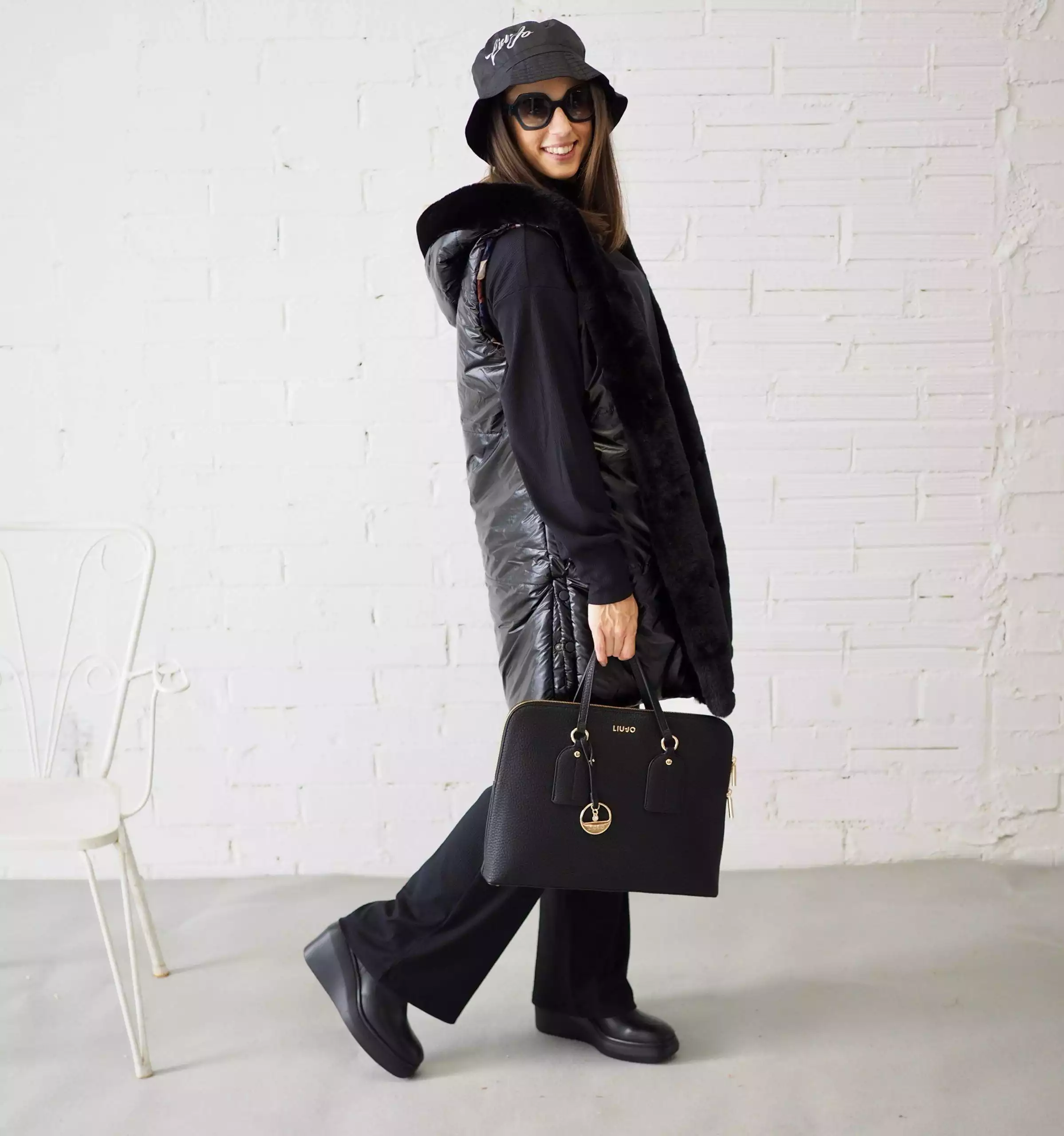 Gorro de la marca LiuJo modelo 2XX003 en color negro. Gorro de lluvia elaborado en nylon negro con detalle de logo estampado en plateado. Ajustable en la parte posterior. Bolsa antipolvo incluida. Dimensiones: 20 x 21 cm