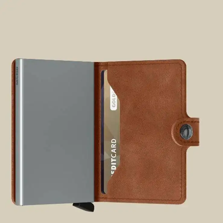 Tarjetero de la marca Secrid, modelo MiniWallet Vintage en color cuero. Este tarjetero cabe perfectamente en todos los bolsillos. La cubierta exterior se corta con una longitud más larga para crear más espacio para tarjetas, billetes y tickets. El corazón del producto es el Cardprotector, cuyo mecanismo permite extraer las tarjetas con un simple movimiento, evitando que se doblen, rompan o lean sin que nos demos cuenta. Tamaño: 102mm x 68mm