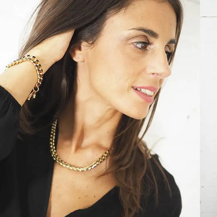 Pulsera de acero de cadena con cierre en T y combinación de dos colores: negro y dorado.