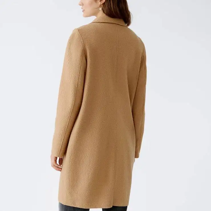 Abrigo clásico de lana hervida. Corte recto y clásico. Botonadura sencilla con cuello de solapa. Bolsillos laterales. Sin forro, lo que hace que el abrigo sea muy cómodo.
