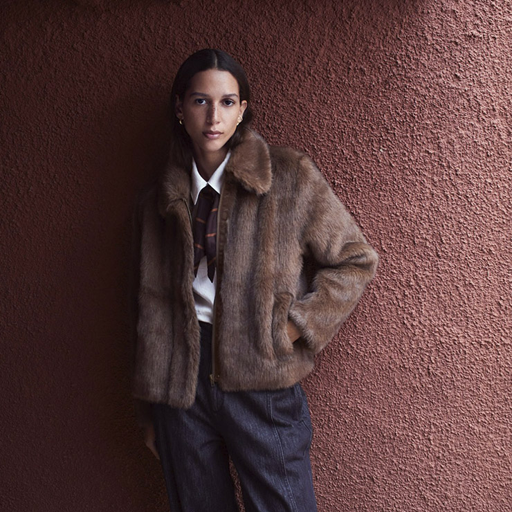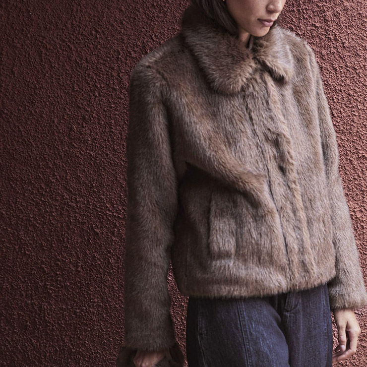 Abrigo corto de la marca Yerse efecto Pelo de color marrón.
