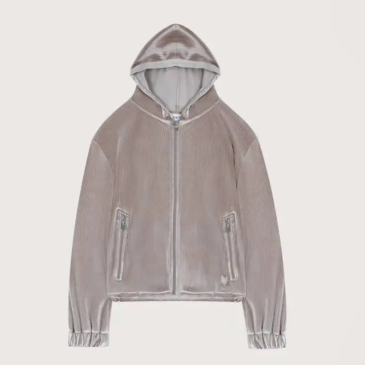 Chaqueta elaborada en pana con tacto suave y efecto brillante. Cierre de cremallera. Capucha. Ajuste cómodo. Cierre con cremallera.