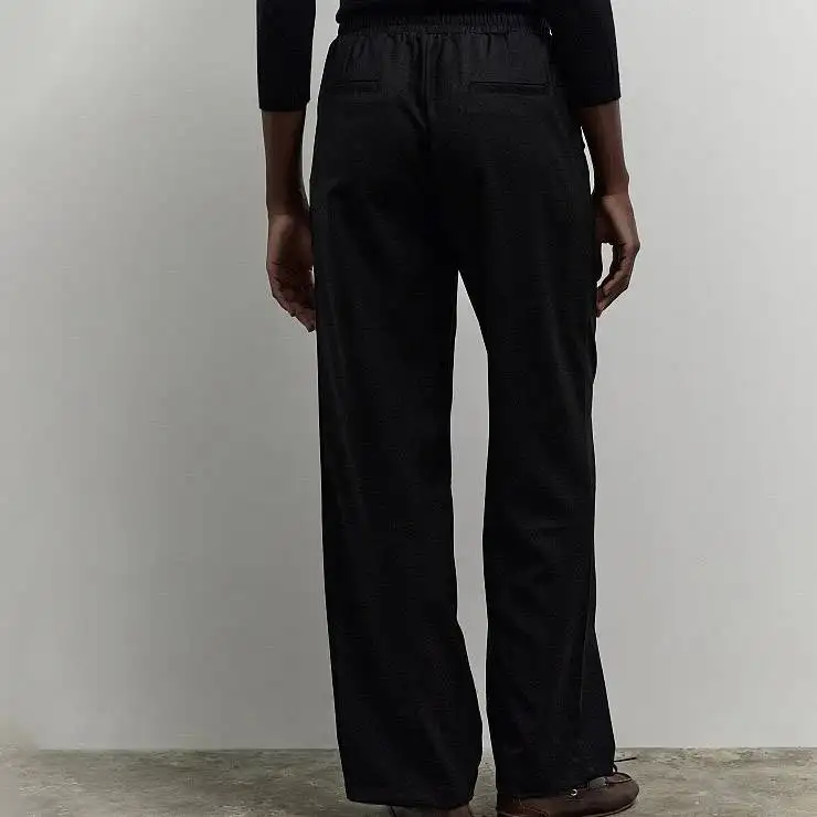 Pantalón tipo jogger en poliéster y viscosa. Cintura elástica. Cierre ajustable con lazo. Bolsillos. Diseño recto.