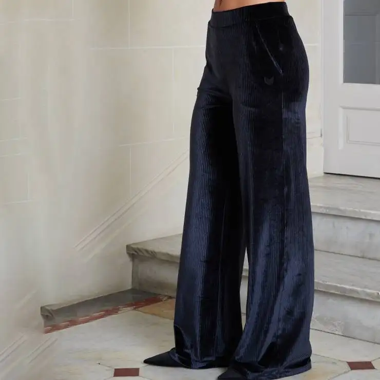 Pantalón ancho elaborado en poliamida y elastano. Corte fluido. Terciopelo brillante. Bordado de espiga en los bolsillos.