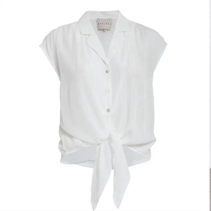 Camisa sin mangas elaborada en viscosa y poliéster. Cuello camisa. Botones nacarados en la parte frontal. Detalle de nudo en el bajo.