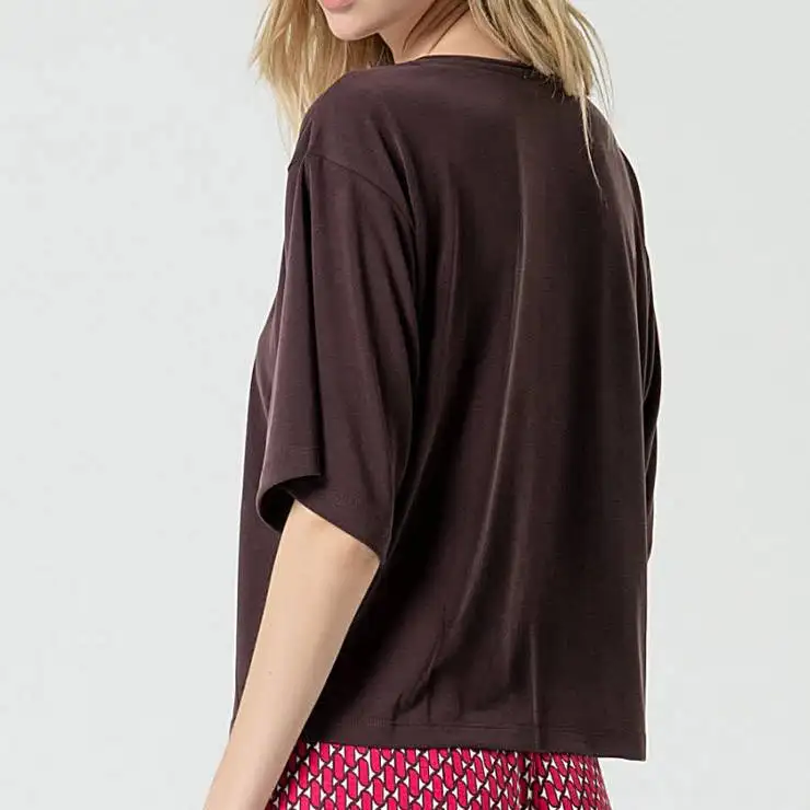 Camiseta oversize elaborada en viscosa. Manga francesa y escote pico. Tejido muy suave y elástico.