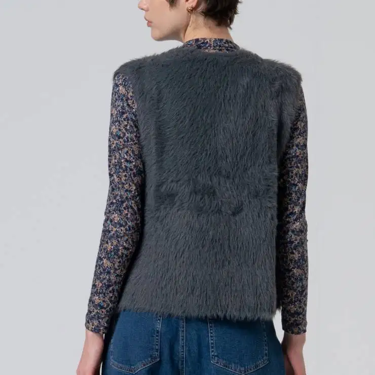Chaleco en tejido suave y ligero con textura gustosa al tacto. Sin cierre con acabado efecto pelo.