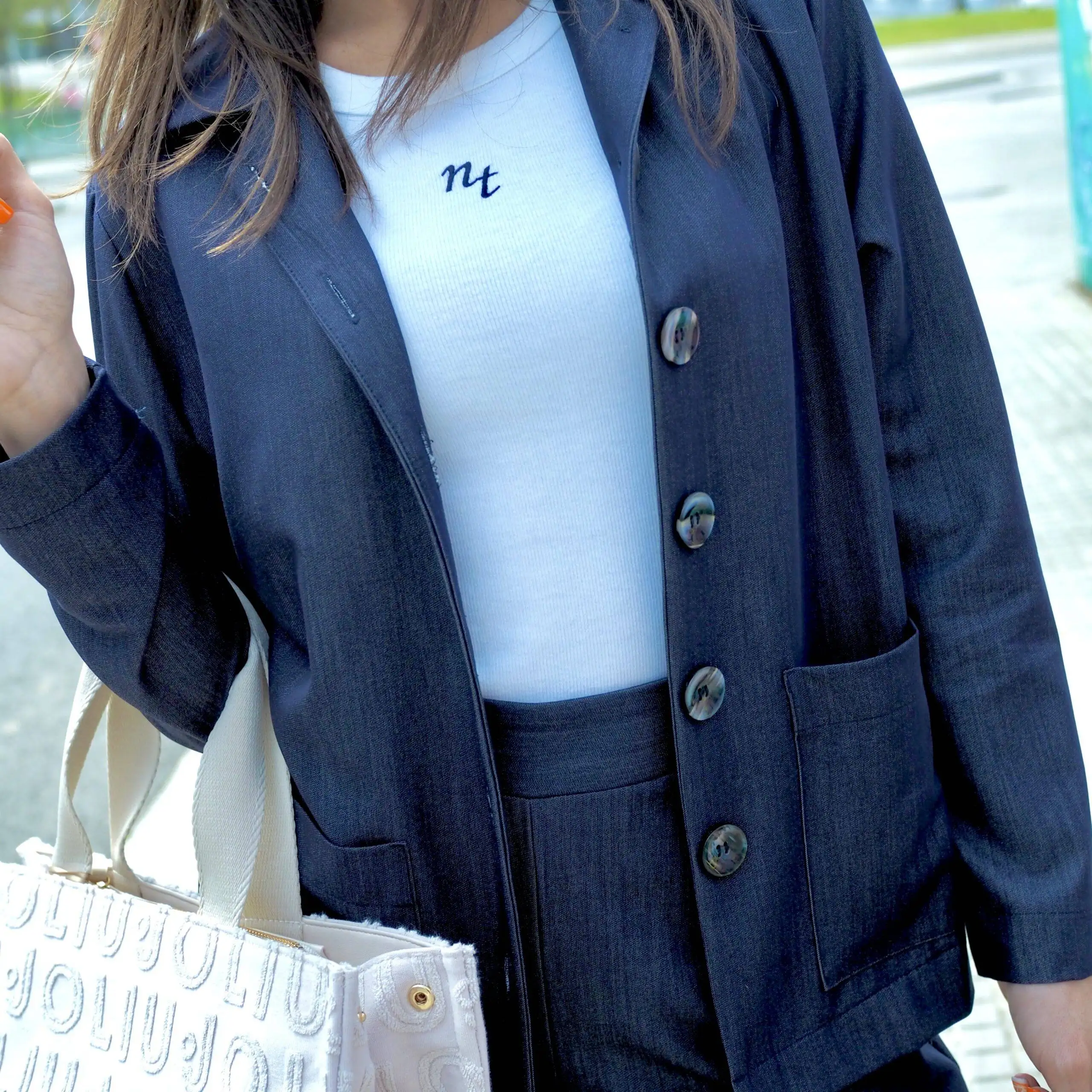 Sobrecamisa elaborada en tejido Tencel estilo denim. Cuello camisa. Botones frontales. Bolsillos parche.