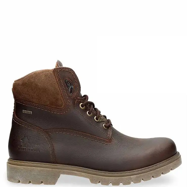 Botín de la marca Panama Jack de hombre con cordones, realizado en piel y forro interior Gore-tex. Plantilla anatómica extraíble y suela de caucho natural flexible y resistente. Altura caña: 16cm.