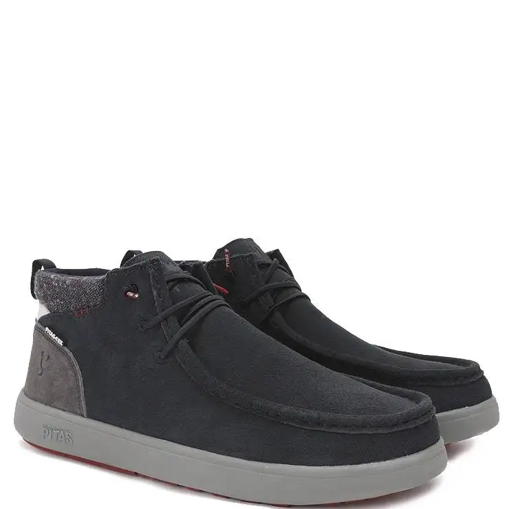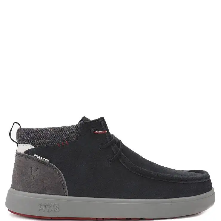 Botín elaborado en serraje hidrofugado. Talonera con piel nobuck. Forro textil con membrana PITAS-TEX. Plantilla extraíble de EVA Pitas-comfort. Suela EVA ultralight con goma antideslizante.