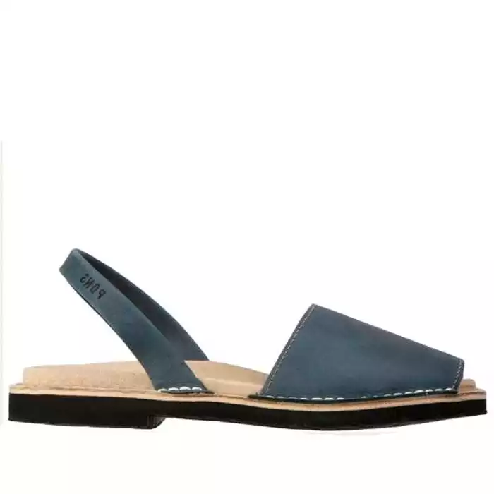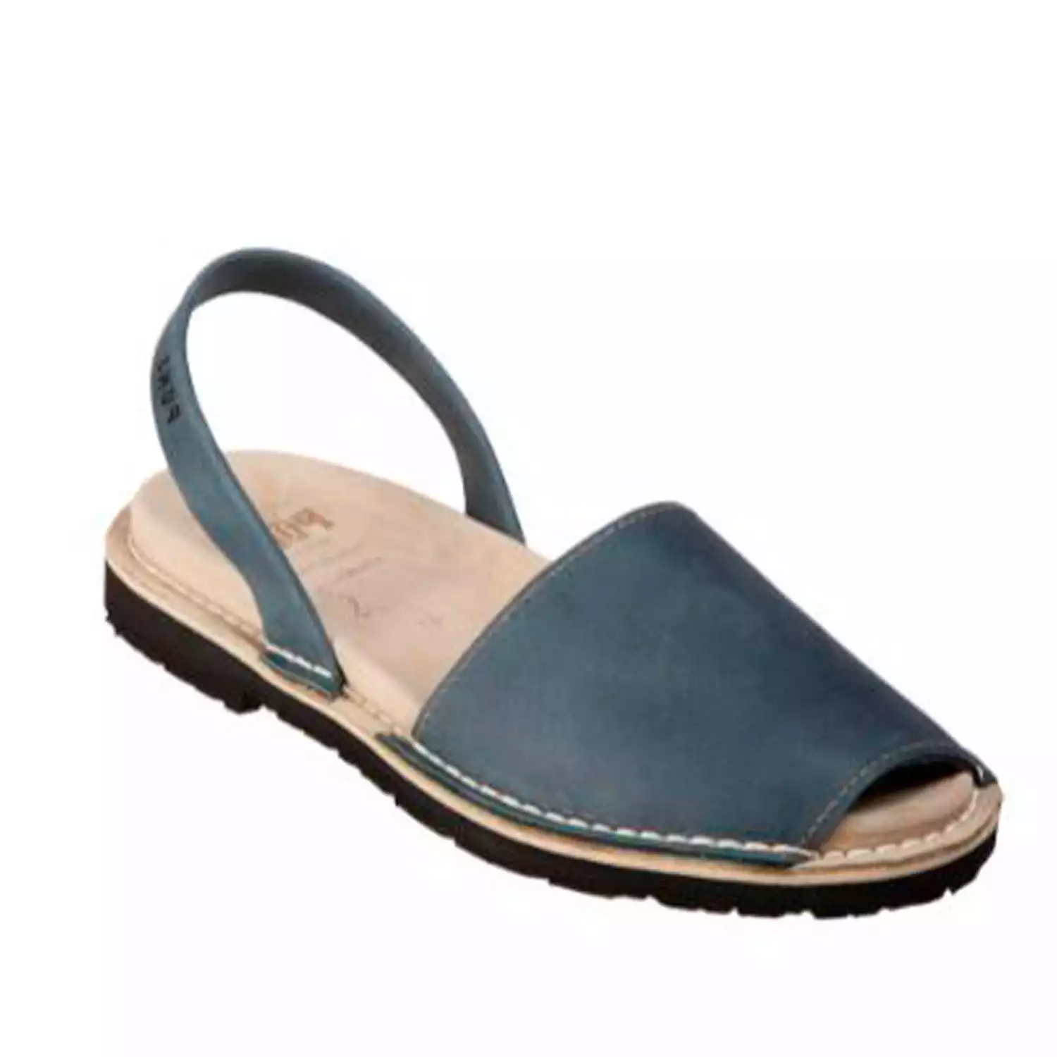 Avarca menorquina plana en piel. Plantilla anatómica con la horma hecha del pie y suela ligera.