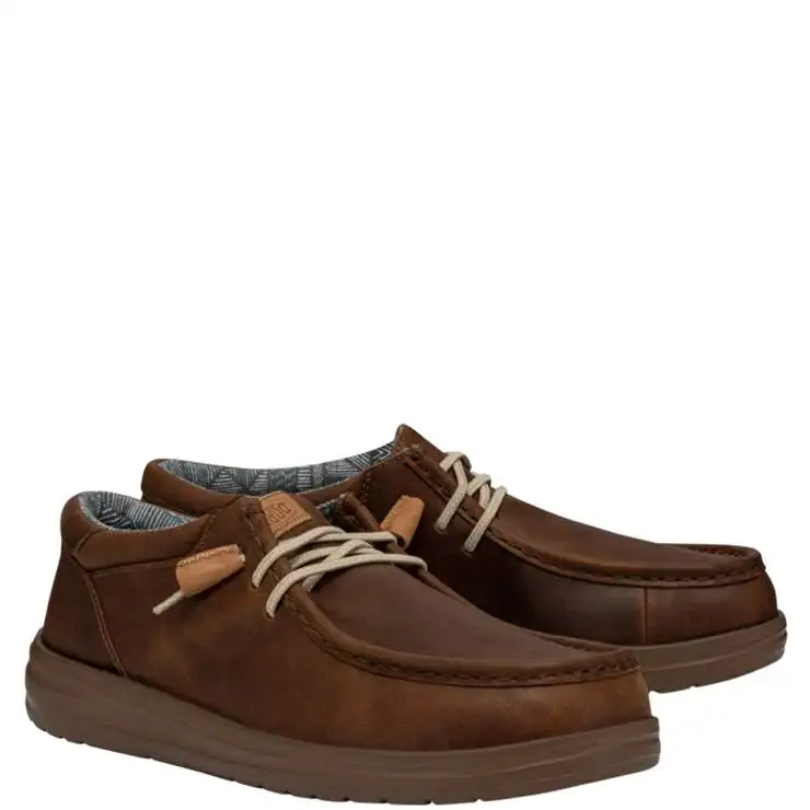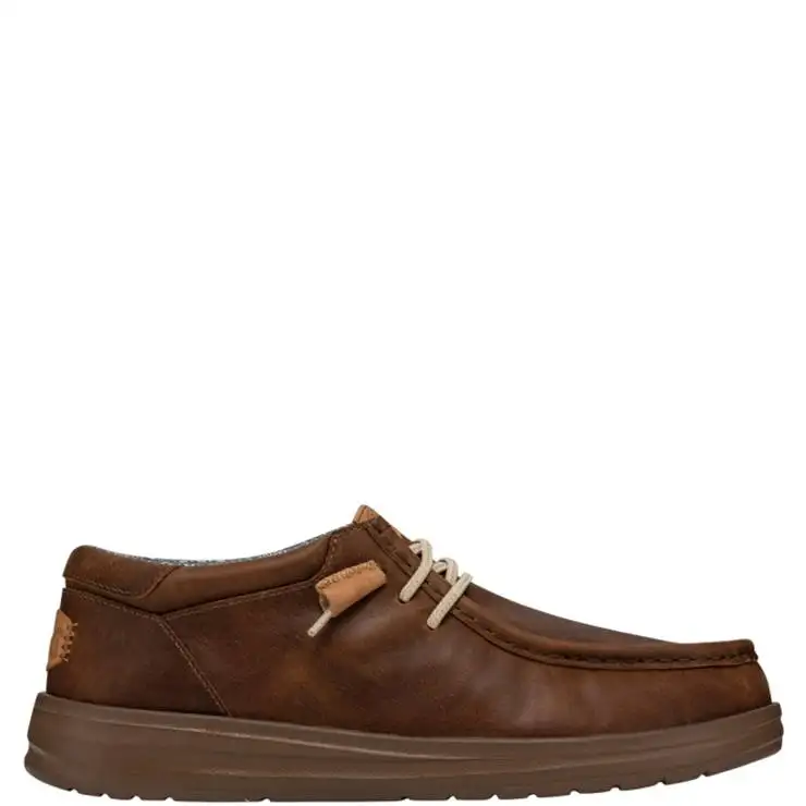 Mocasín de la marca HeyDude modelo Wally Grip Craft Leather en color marrón.