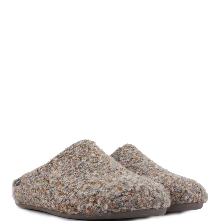 Zapatillas de casa tipo zueco elaboradas en tejido moteado. Suela de goma antideslizante. Plantilla extraíble con cuña de 2cm.