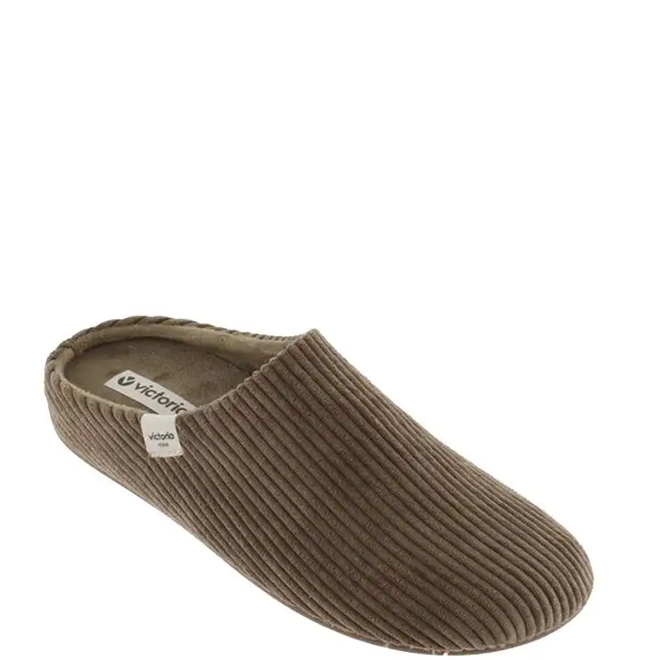 Zapatillas de casa destalonadas elaboradas en pana. Plantilla extraíble de tejido de pelo sintético que aporta calidez y confort . Suela de caucho natural 100%.