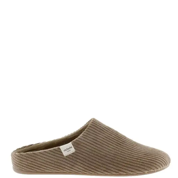 Zapatillas de casa destalonadas elaboradas en pana. Plantilla extraíble de tejido de pelo sintético que aporta calidez y confort . Suela de caucho natural 100%.