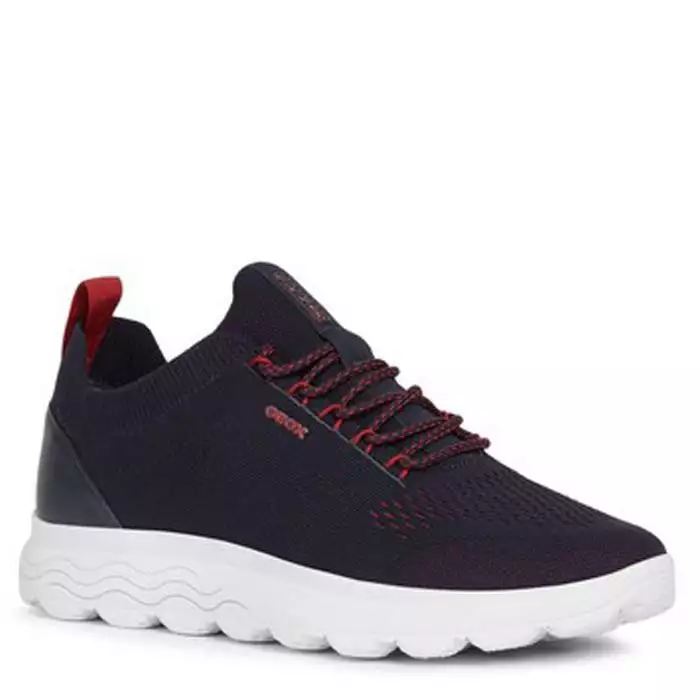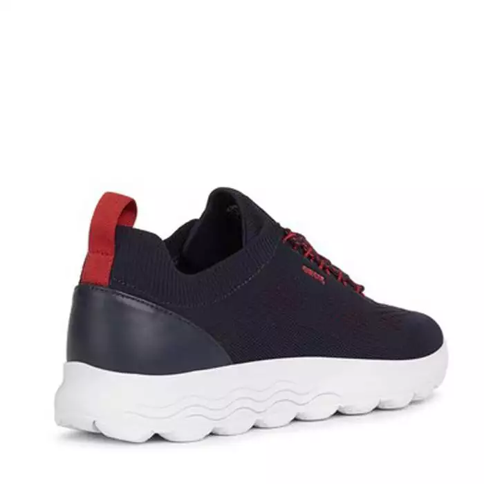 Zapatillas de la marca Geox, modelo Spherica en color azul marino. Zapatillas deportivas elaboradas en tejido con efecto tejido de punto. Modelo emblemático con grandes niveles de transpirabilidad, confort y amortiguación. Sistema zero-shock con esferas amortiguadoras. Cómoda suela de goma transpirable. Cierre con cordones. Plantilla desmontable.