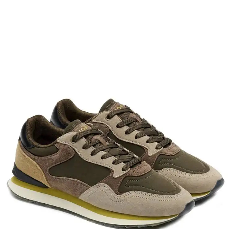 Zapatillas deportivas con cordones elaborada en una mezcla de cuero y nailon. Suela de goma antideslizante y duradera. Suela ergonómica y plantilla extraíble de memory foam. Media suela de EVA de 3 cm de altura.