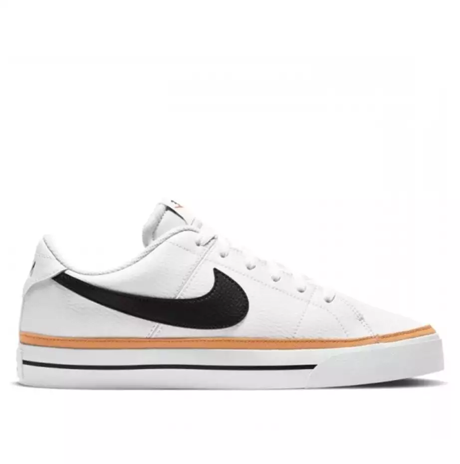 Zapatillas de la marca Nike, modelo Court Legacy en color blanco. Zapatillas deportivas en piel blanca, impecable y duradera. Costuras intrincadas tipo tenis. Ribete de lona en la mediasuela. Suela exterior de goma y logo en el lateral de color negro.