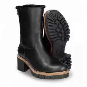 Bota de la marca Panama Jack de mujer con tacón, realizada en piel Waterproof que repele el agua. Esta bota tiene forro interior de pelo, perfecto para mantener los pies calientes en días de frío. Plantilla forrada de pelo y acolchada, que ayuda a la absorción de los impactos. Suela de goma, flexible, resistente y adherente.