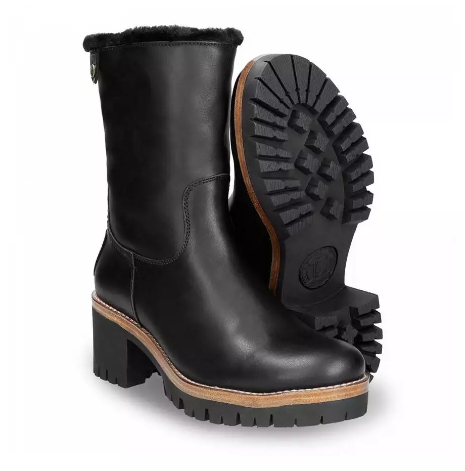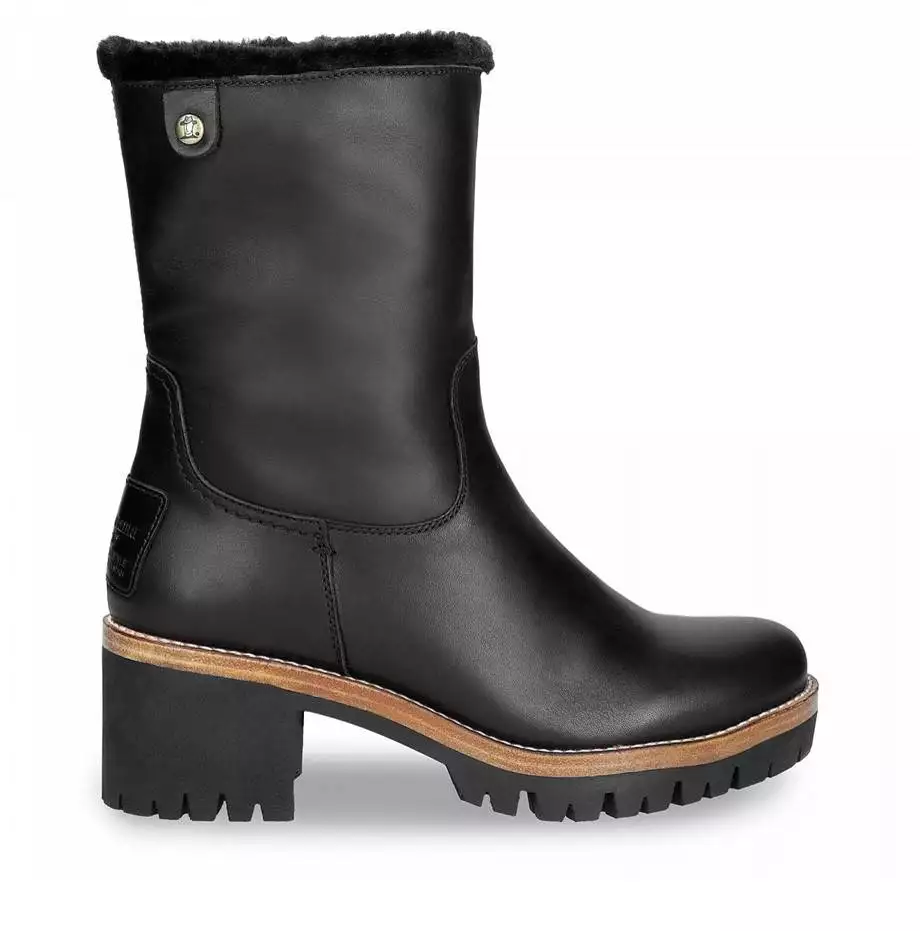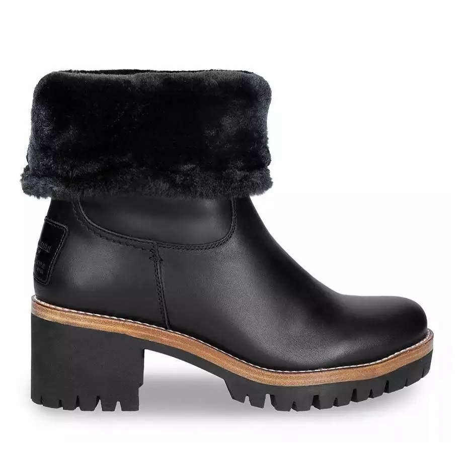 Bota de la marca Panama Jack de mujer con tacón, realizada en piel Waterproof que repele el agua. Esta bota tiene forro interior de pelo, perfecto para mantener los pies calientes en días de frío. Plantilla forrada de pelo y acolchada, que ayuda a la absorción de los impactos. Suela de goma, flexible, resistente y adherente.