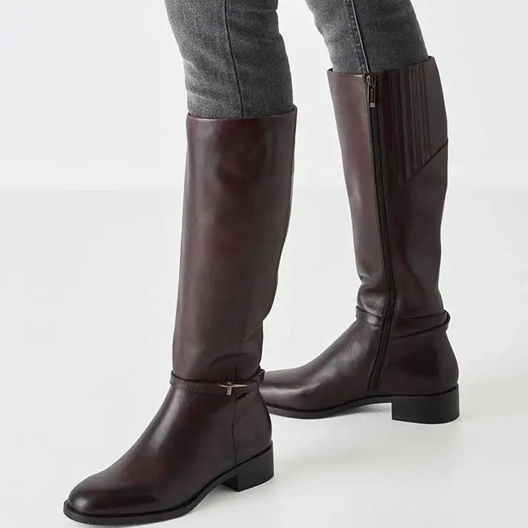 Bota alta elaborada en piel con acabado brillante. Suela de goma antideslizante con tacón ancho de 3,5 cm. Cierre con cremallera lateral interna. Plantilla de espuma viscoelástica Touchit. Detalle de hebilla decorativa.