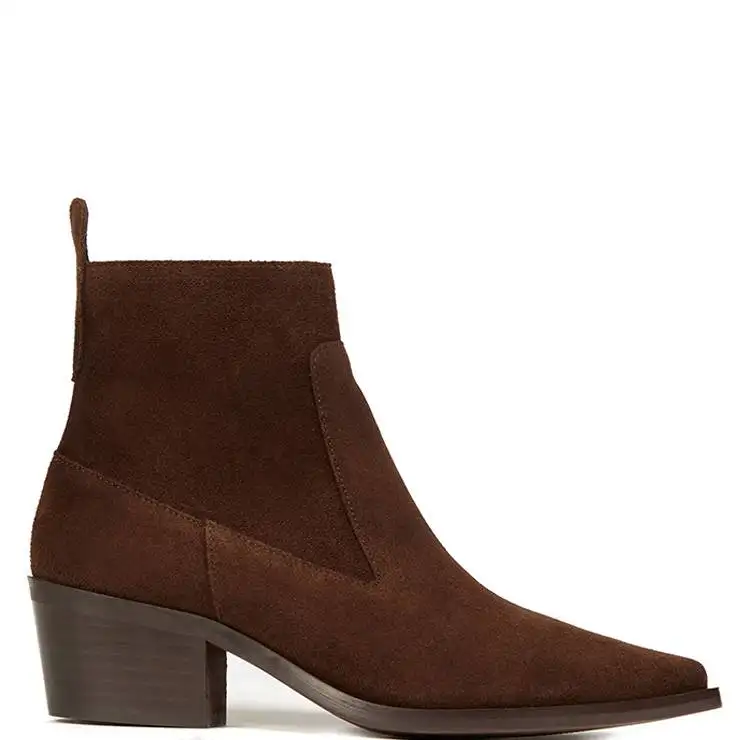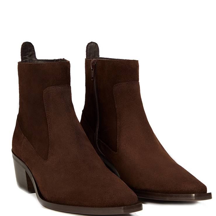 Botín campero de ante. Tacón campero de 4,5 cm. Suela de goma. Cierre con cremallera.