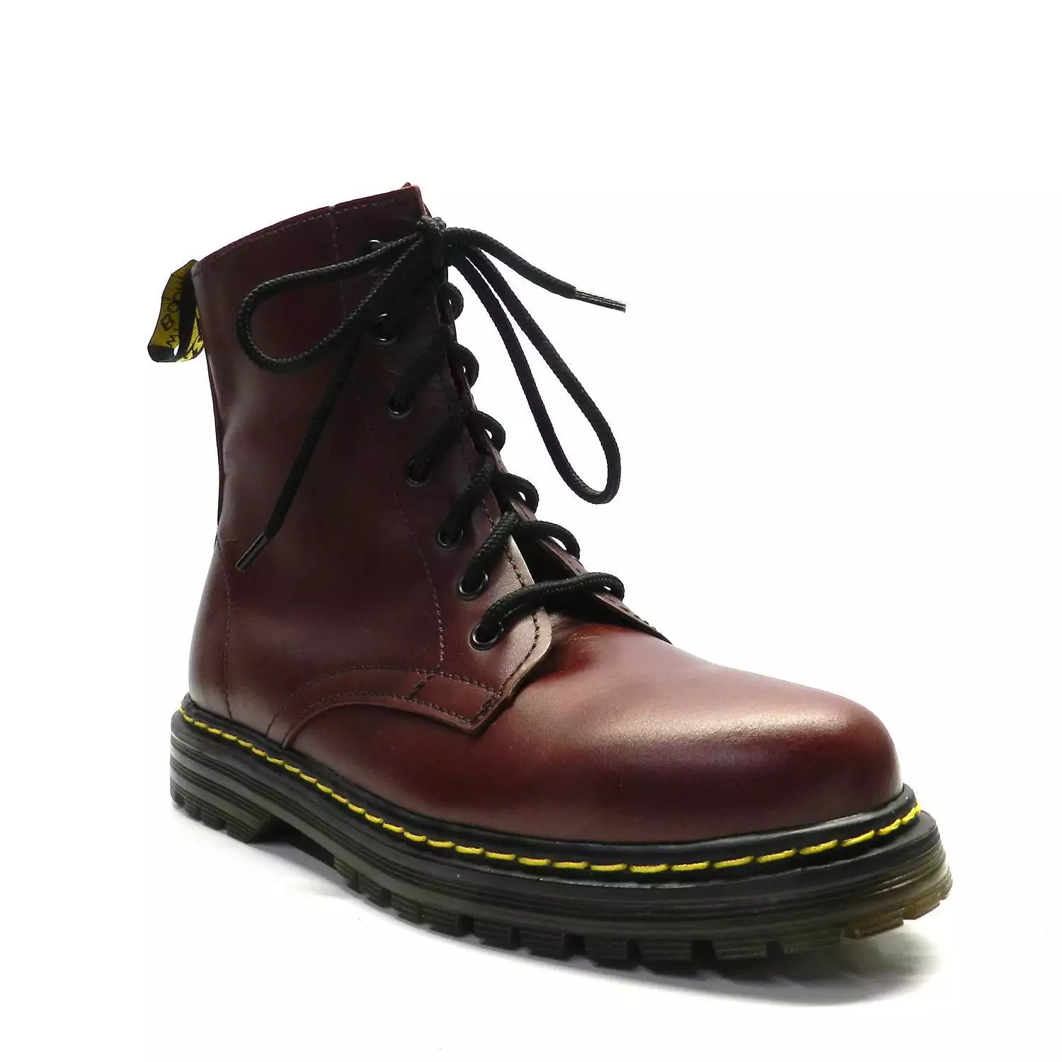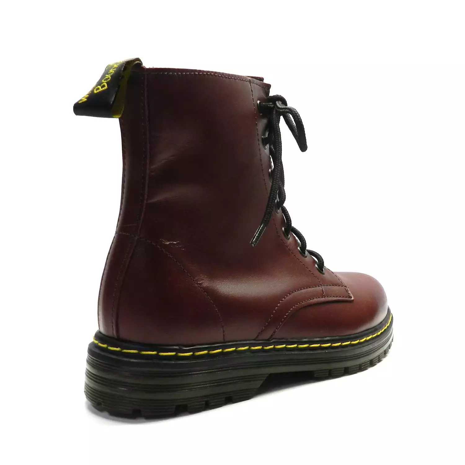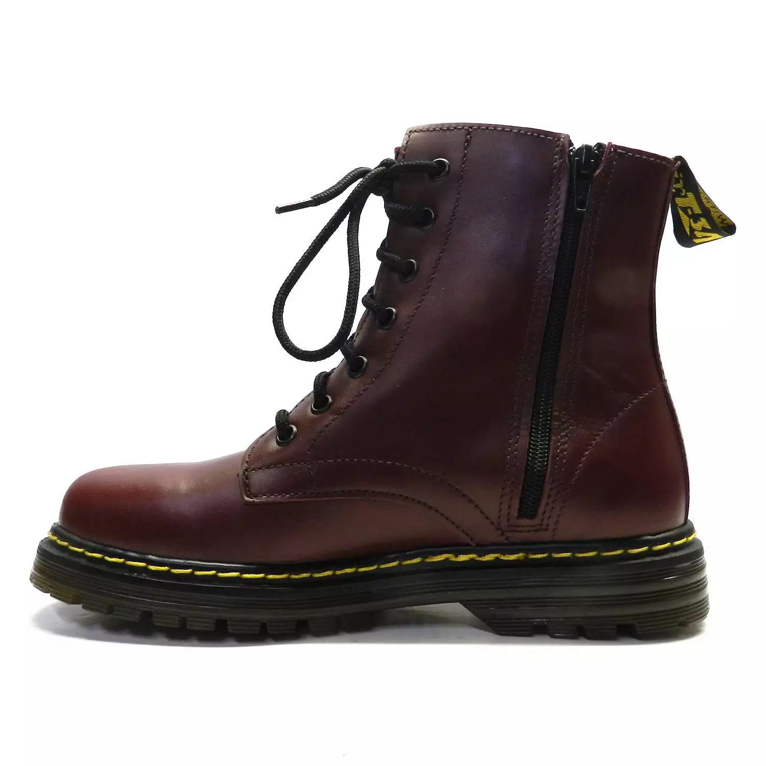 Botín de marca Escala modelo Rider en color granate. Botín de piel de estilo militar, con cordones, cremallera lateral y tirador en la parte trasera.
