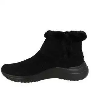Botín de la marca Skechers, modelo 144250 en color negro. Botín tobillero de piel de ante suave y cuello con forro de pelo sintético. Parte superior tratada con Scotchgard resistente al agua y a las manchas. Media suela Ortholite para gran comodidad. Sin cierres.