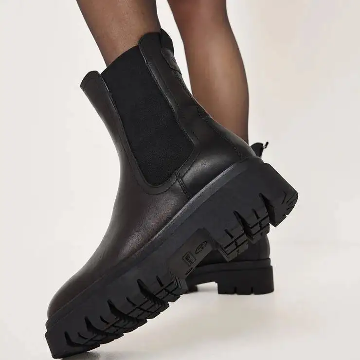 Botín elaborado en cuero y material sintético. Detalle de elástico en los laterales. Suela de goma de 5 cm de altura. Plantilla suave Touchit.