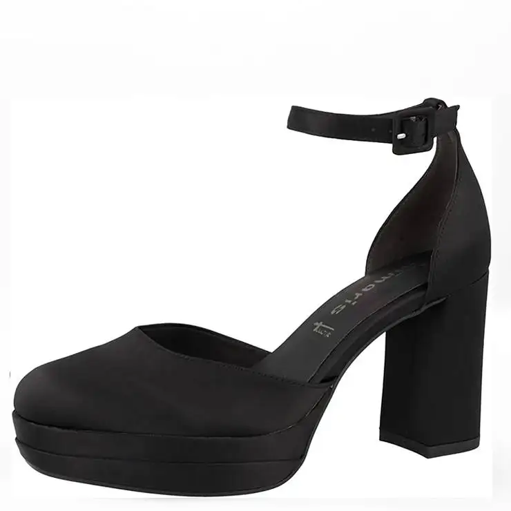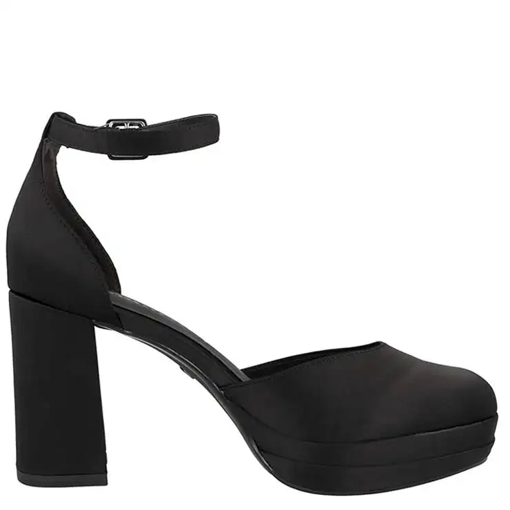Salón de la marca Tamaris, modelo pumps 24406-20 en color negro. Zapatos de salón elaborados en raso de punta redonda. Plataforma y tacón grueso 8cm.