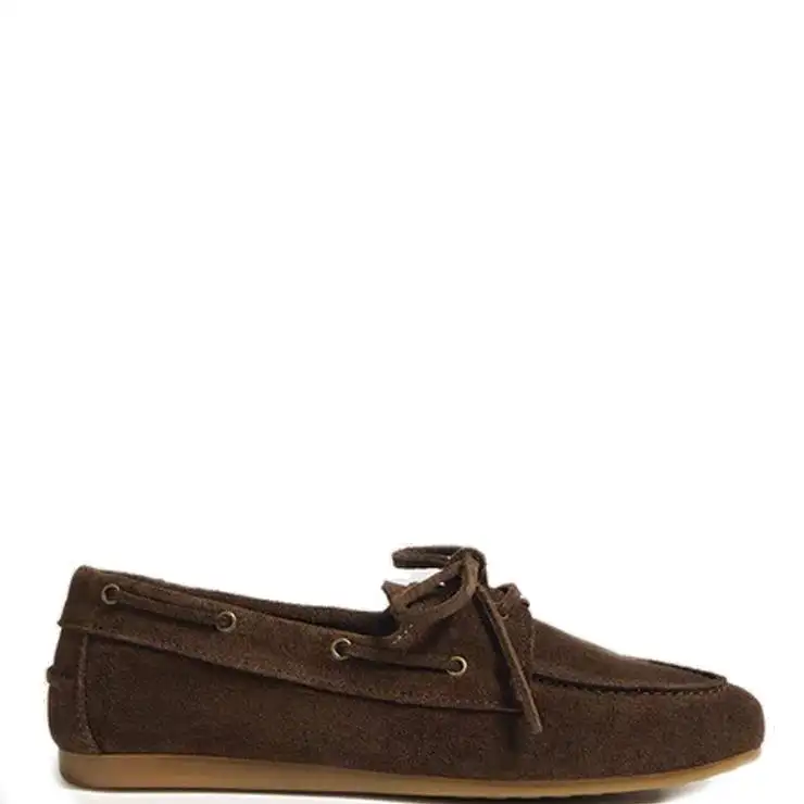 Náutico de piel serraje. Cierre de cordones. Suela plana de 1cm. Suela de goma flexible.