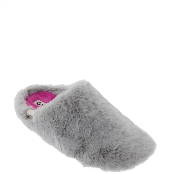 Zapatillas de casa destalonadas en pelo corto muy suave. Suela de caucho natural 100%. Plantilla extraíble en fucsia fluor de tejido tipo borreguito.