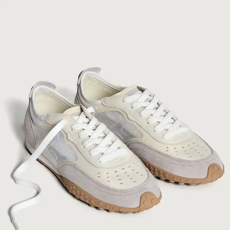 Zapatillas deportivas de mujer con cierre con cordones. Confeccionadas con combinación de materiales y colores. Rejilla transparente en los laterales. Detalle de suela de tacos engomada.