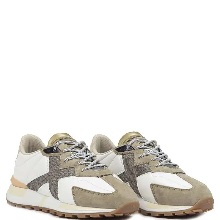 Zapatillas deportivas con cordones con combinación de diferentes materiales. Logo de la marca en el lateral.