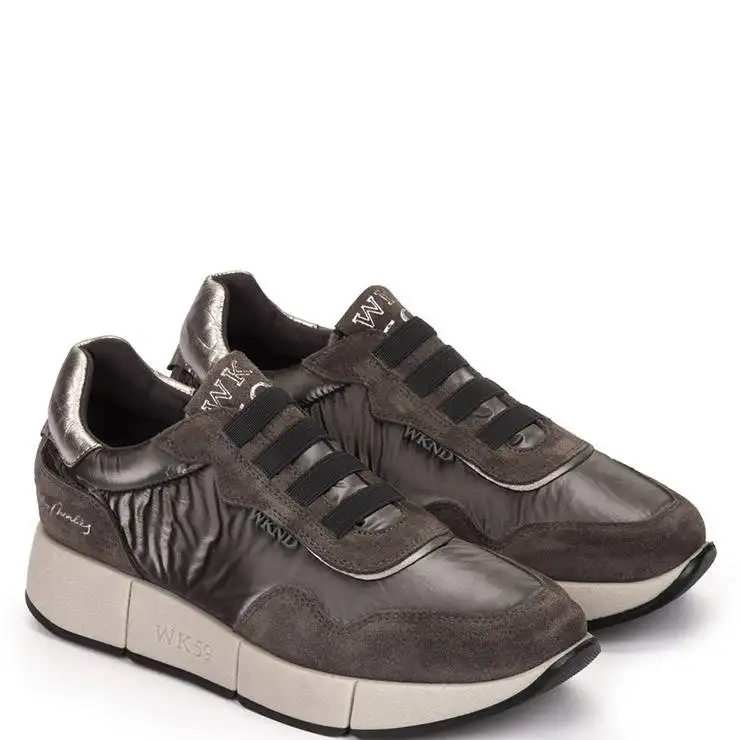 Zapatillas deportivas elaboradas en ante y tejido. Cordones elásticos. Suela de caucho de 2 cm de altura.