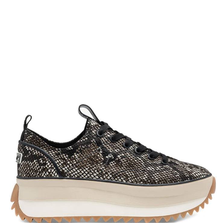 Zapatillas de lona estampada. Suela dentada de goma con doble piso de 5,5 cm de altura. Cierre con cordones. Plantilla con tecnología Touch-It.