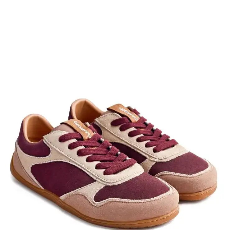 Zapatillas deportivas estilo barefoot elaboradas en piel serraje. Flexible y torsionable. Plantilla extraíble. Suela fina y puntera amplia. Sin desnivel (drop cero). Forro de poliuretano y poliéster transpirable. Suela de caucho flexible.