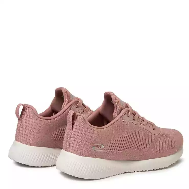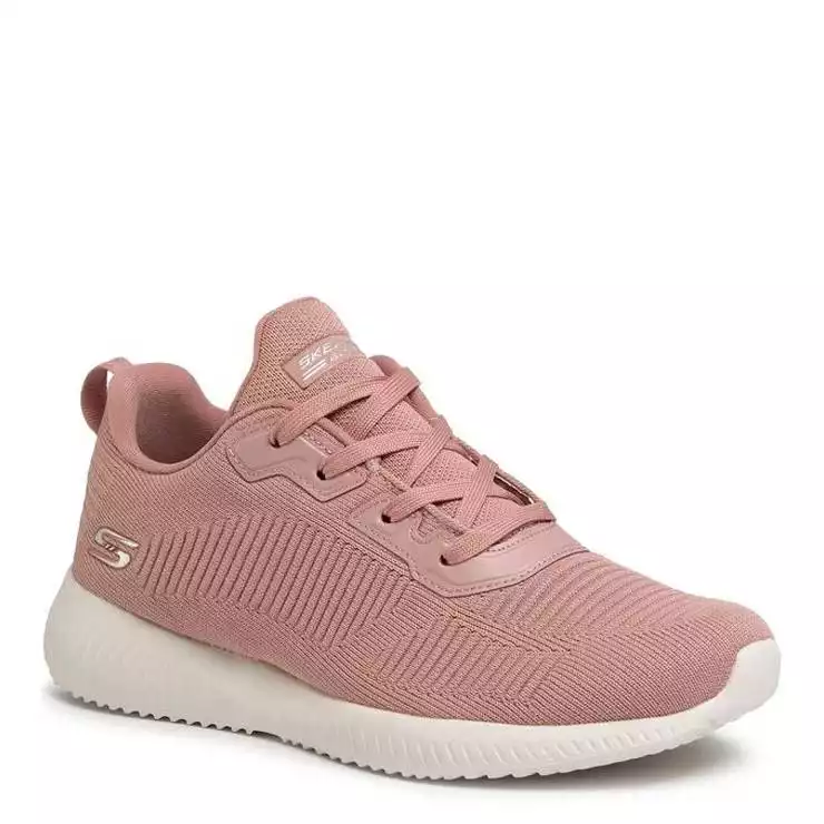 Zapatillas de la marca Skechers, modelo 32504 en color rosa. Zapatilla deportiva de tejido knit entramado suave en acabado mate. Plantilla de confort Memory Foam con amortiguación. Cierre con cordones, capas sintéticas superpuestas. Media suela elevada para mayor comodidad. Suela con tracción de goma flexible. Talón 3,2 cm.