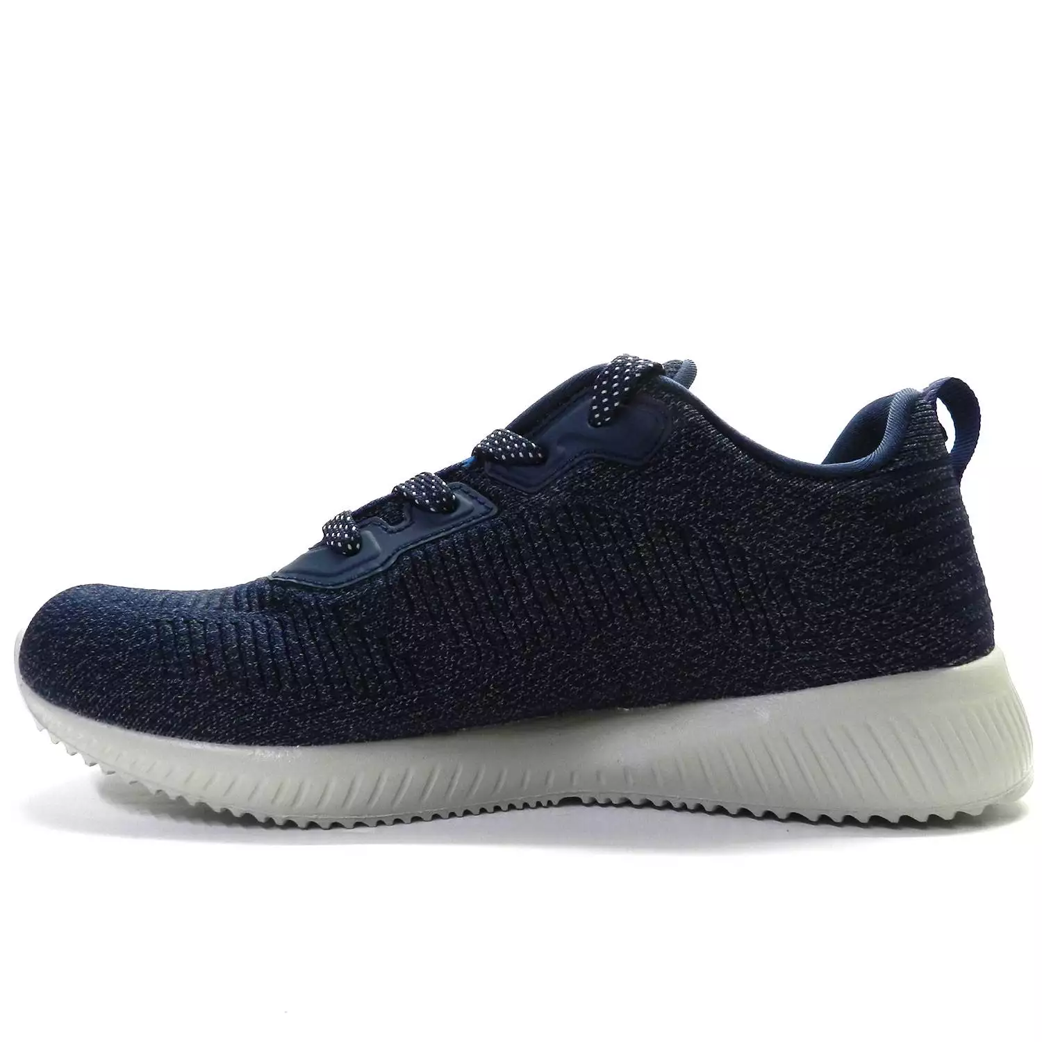 Zapatillas de la marca Skechers, modelo nvy en color azul. Zapatilla deportiva de malla superligera con tejido Air Mesh de tacto suave y, transpirable en color azul jaspeado. Plantilla Memory Foam Air Cooled. Cierre con cordones. Suela con tracción de goma flexible.