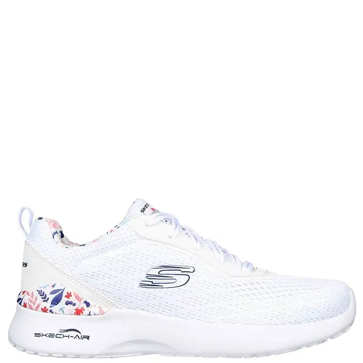 Zapatillas deportivas elaboradas en malla y tejido sintéticos con ribete de estampado floral. Plantilla Skechers Memory Foam . Media suela con cámara de aire Skech-Air. Suela de goma flexible con tracción.