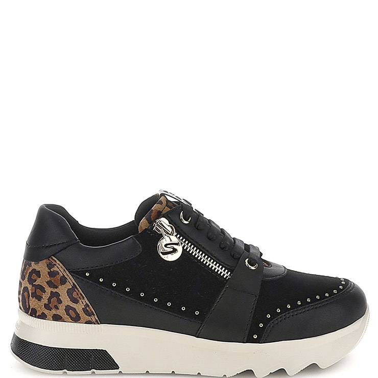 Zapatillas elaborada en combinación de materiales. Detalle en animal print y mini tachuelas. Cierre cordones elásticos y cremallera. Suela de goma de 3cm. Plantilla extraíble Blusoft memory ® con almohadilla de viscoelástica en el talón para mejorar la amortiguación.