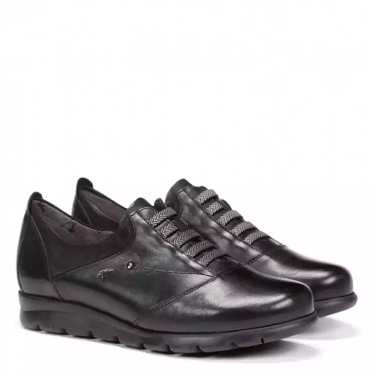 Zapatos de la marca Fluchos, modelo 32268 en color negro. Zapatos fabricados en napa lisa con cordones elásticos y suela dentada. Un básico que aporta comodidad y confort para el día a día.