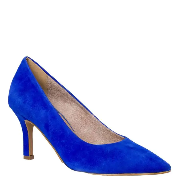 Zapato de tacón estilo salón elaborado en piel de ante y acabado en punta.