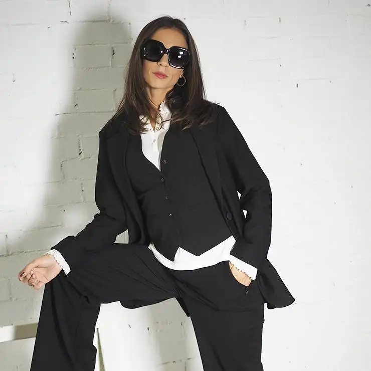 Americana tipo blazer elaborada en exclusivo tejido Compact con un punto Milano compacto y elástico. Tejido resistente a las arrugas. Cuello con solapas y cierre de un botón que la hace versátil y adecuada para diferentes ocasiones. Bolsillos aplicados en la parte delantera.